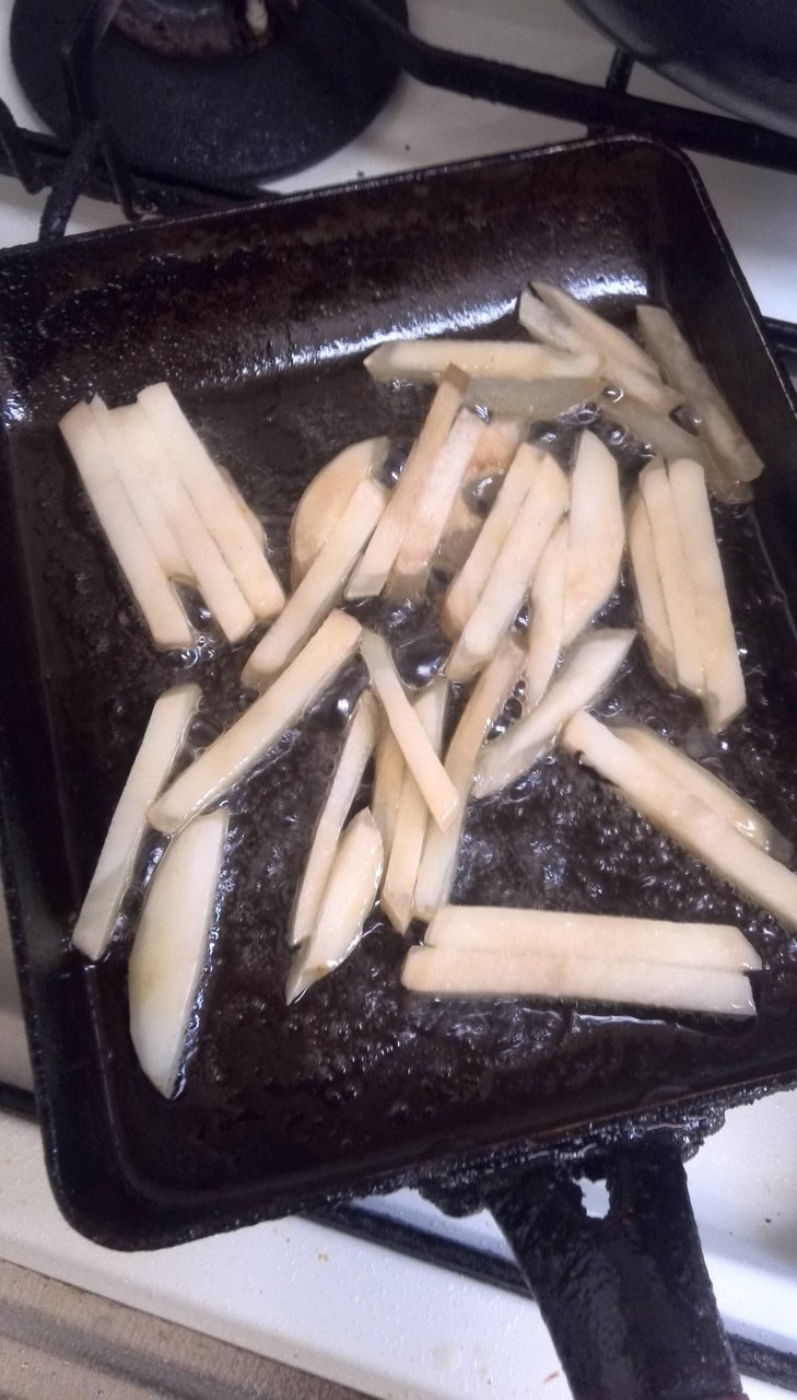 ベーコンの脂がかなり出たからついでにイモも揚げた