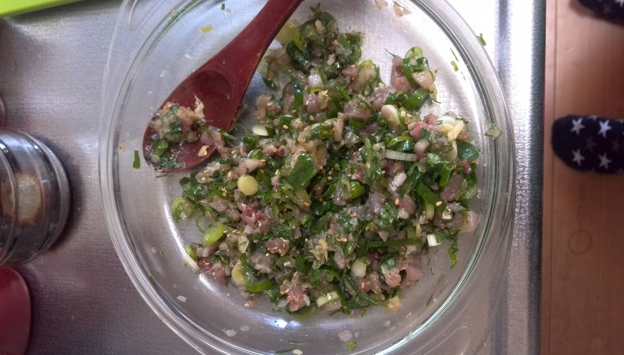 コンビーフにマヨネーズと刻んだ万能ねぎちらして