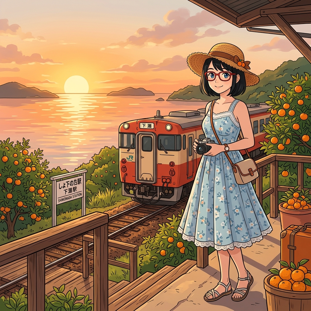 JR予讃線の普通列車でしか行けない不便さが、逆にいい。観光バスが来られないから、ホームにいるのは数人だけ。夕暮れ時が特に美しいらしいんだけど、電車の本数が少ないから帰りの時刻は事前に確認必須。計画性が問われる場所ね。
