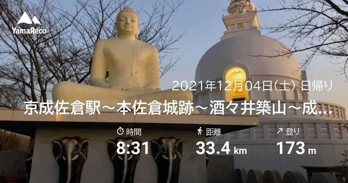 山行記録: 京成佐倉駅〜本佐倉城跡〜酒々井築山〜成田山新勝寺〜成田市さくらの山〜三里塚さくらの丘〜ひこうきの丘〜航空科学博物館〜成田平和仏舎利塔〜成田空港T2〜東成田駅