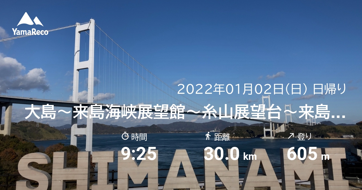 山行記録: 大島〜来島海峡展望館〜糸山展望台〜来島海峡サービスエリア〜今治駅〜今治城〜今治市街