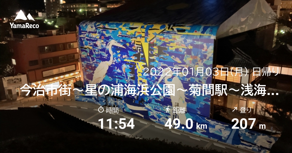 山行記録: 今治市街〜星の浦海浜公園〜菊間駅〜浅海駅〜坊っちゃんカラクリ時計〜道後公園〜松山市街