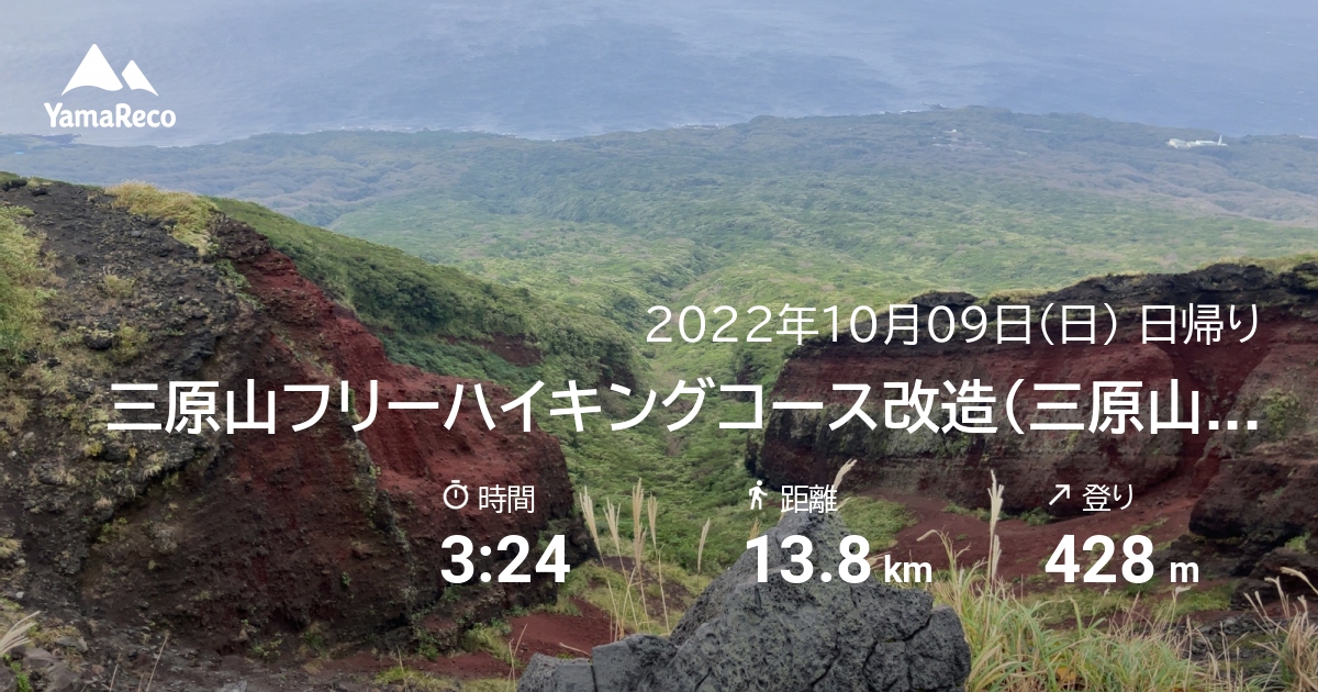 山行記録: 三原山フリーハイキングコース改造(三原山頂口バス停〜三原神社上社〜ゴジラ岩〜火口展望台〜火口展望所〜剣ガ峰〜火口西展望所〜赤ダレ〜櫛形山〜三原山温泉バス停)