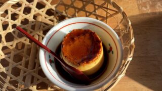 味の感想は、薄味でおばあちゃんが作ってくれたプリンって感じ。朝の起き抜けやったからもっと甘い方がすきかも。卓上にあったかぼすいっぱいかけて食べたよ