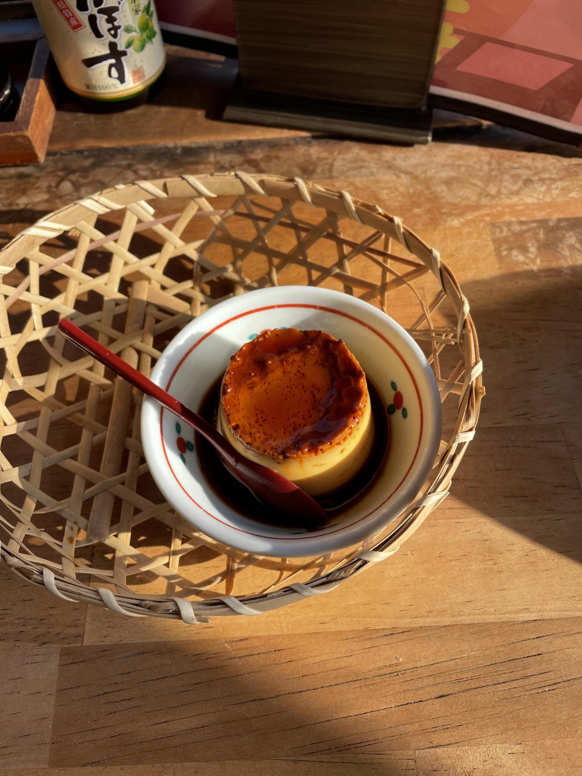 温泉ええなプリンにかぼすかけて食べるの衝撃やった